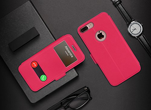 FYY - Cover per iPhone 8 Plus, con finestra di apertura per Apple iPhone 8 Plus/iPhone 7 Plus, colore: Rosa scuro
