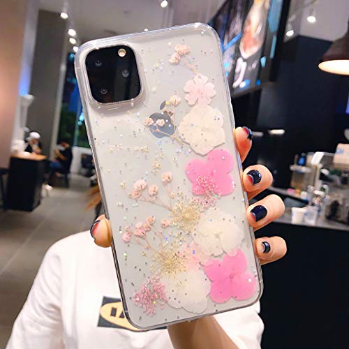 Cover per iPhone 11 Pro Max con fiori secchi, in gel di cristallo, sottile, fatta a mano, motivo floreale immerdibile, per iPhone 11 Pro Max, colore: Rosa