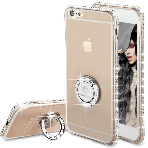 Cover iPhone 6/6S Glitter Brillantini Silicone per Ragazze,Kickstand Bling Diamante Brillante Cristallo Lucciante Luminosa Custodia per Dona iPhone 6/6S,4.7 pollice (Trasparente)