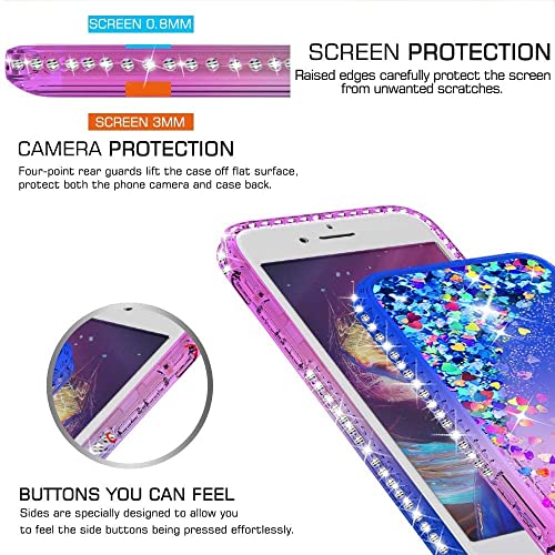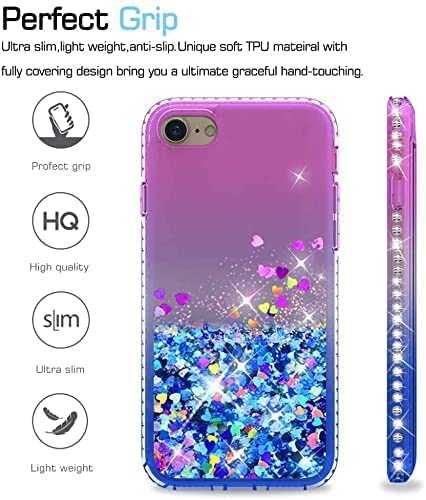 LeYi per Cover iPhone SE 2020,Cover iPhone 7/8 Glitter Custodia con Vetro Temperato [2 Pack],Brillantini Diamond Liquido Sabbie Mobili Bumper Case Custodie per Apple iPhone SE 2020 Donna Viola Blu