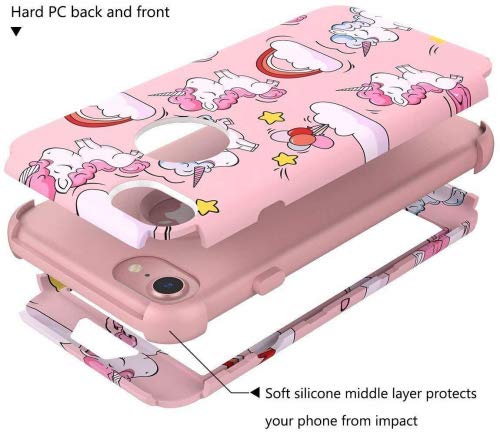 WE LOVE CASE Cover iPhone 7 360 Gradi Protection Custodia iPhone 8 Plus Rigida e Silicone Morbido Protezione Bumper Coperture Caso per iPhone 7/ 8 Rosa Unicorno