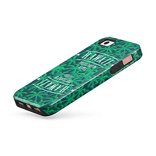 Cover per iPhone 5 & 5s & SE Case Hawaii The Island of Aloha Honolulu Tropical Palm Trees Pattern Resistente agli Urti, Guscio Rigido a 2 Strati in PC + Custodia Protettiva in TPU a Design Ibrido