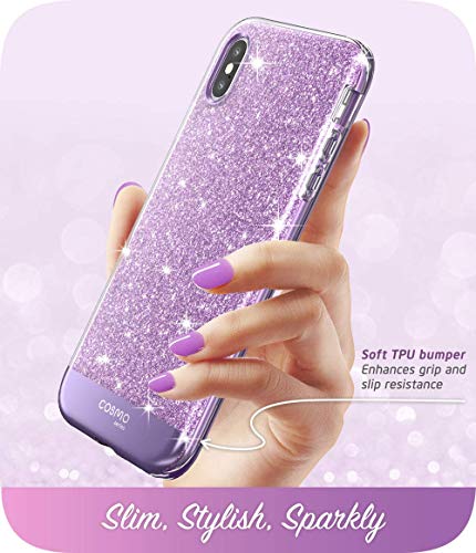 Cover iPhone Xs Max, i-Blason Custodia Brillantini e Protezione Schermo Integrata [Serie Cosmo] Glitter Case Compatibile con Apple iPhone Xs Max 2018, Viola