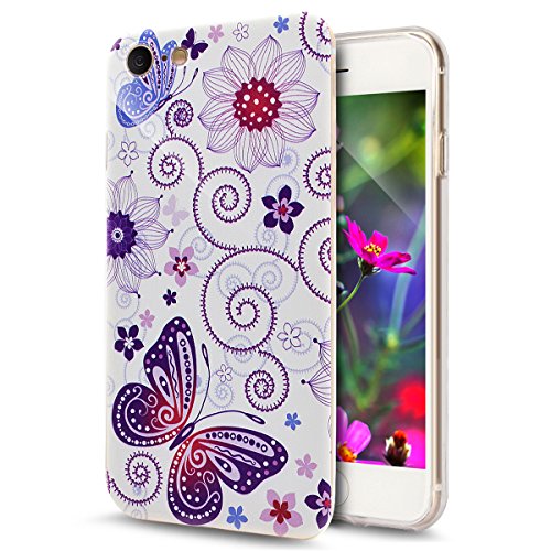 Cover iPhone 8,Cover iPhone 7,ikasus Colorato dipinta Mandala Fiore Cover Custodia Gel Trasparente Morbida Silicone Sottile TPU Protettiva Case Cover per iPhone 8/iPhone 7,Viola Farfalla