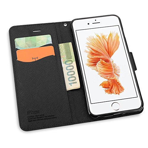 Cover iPhone 6 / 6S, IPHOX Flip Custodia Caso Libro Pelle PU e TPU Silicone con Funzione Supporto Chiusura Magnetica Portafoglio Libretto Custodia per Apple iPhone 6 / 6S (Black)