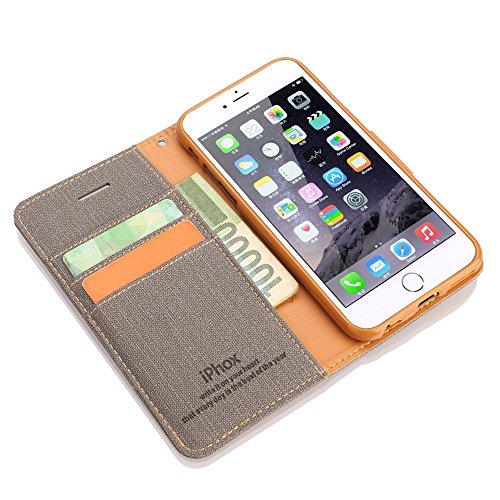 Cover iPhone 6 / 6S, IPHOX Flip Custodia Caso Libro Pelle PU e TPU Silicone con Funzione Supporto Chiusura Magnetica Portafoglio Libretto Bumper Custodia per Apple iPhone 6 / 6S (Gray)