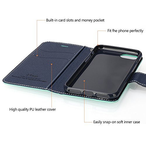 Cover iPhone 7 Plus / 8 Plus, IPHOX Flip Custodia Caso Libro Pelle PU e TPU Silicone con Funzione Supporto Chiusura Magnetica Portafoglio Libretto Custodia per Apple iPhone 7P / 8P (Green & Blue)