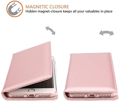 Cover iPhone 8 Plus / 7 Plus, IPHOX Flip Custodia Caso Libro Pelle PU e TPU Silicone con Funzione Supporto Chiusura Magnetica Portafoglio Libretto Portafoglio per Apple iPhone 8P / 7P(Rose Gold)