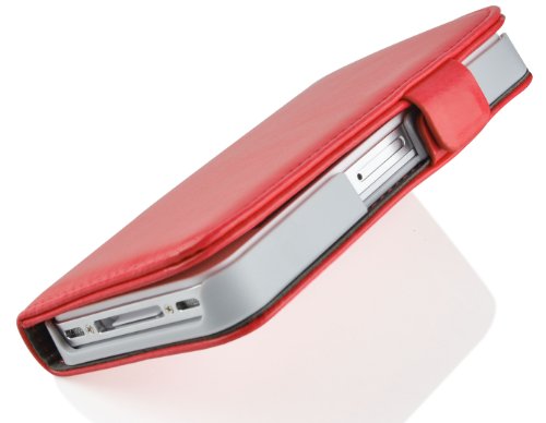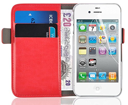 Cover iPhone 4, JAMMYLIZARD Custodia Luxury Wallet a Libro in Pelle per iPhone 4 e 4s, ROSSO