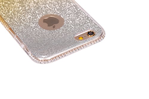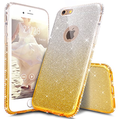 Cover iPhone 6S,Cover iPhone 6,Layer 3 Crystal Clear Hard PC & Soft TPU & Glitter Stickers con Sfumatura di colore Caso l Clear Case Super Sottile Bumper Case Custodia Cover per iPhone 6S/6 4.7",Oro