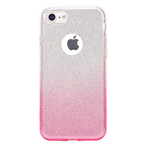 Cover iPhone 6S,Cover iPhone 6,Layer 3 Crystal Clear Hard PC & Soft TPU & Glitter Stickers con Sfumatura di colore Caso Clear Case Super Sottile Bumper Case Custodia Cover per iPhone 6S/6 4.7",Rosa