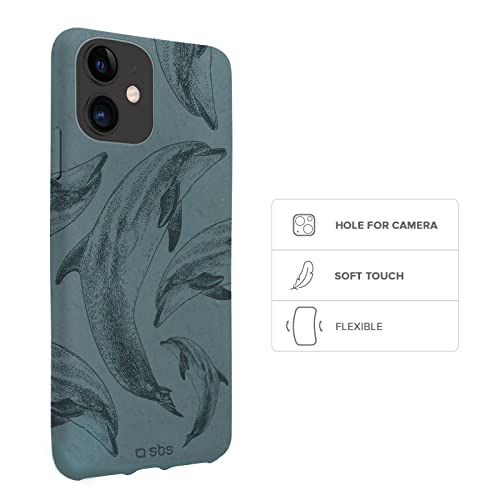 SBS Cover per iPhone 11, Morbida, ECologica, 100% BIO e Compostabile, in Confezione Plastic Free, Texture Delfino