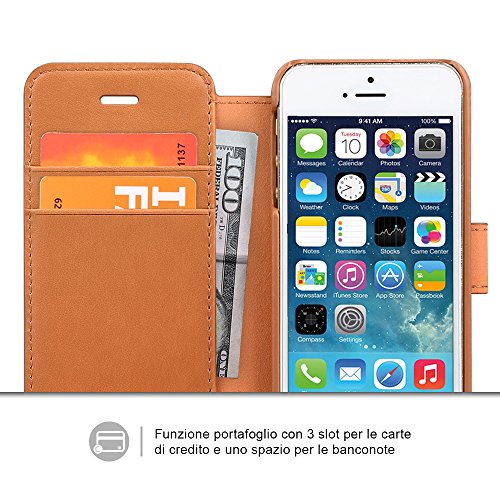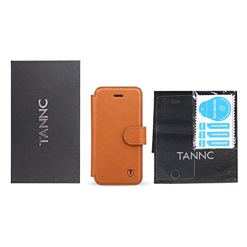 Cover iPhone 5S / iPhone 5 in Pelle TANNC [pellicola vetro temperato schermo inclusa] Con Magnete e Supporto Orizzontale Caratteristiche - Marrone Chiaro