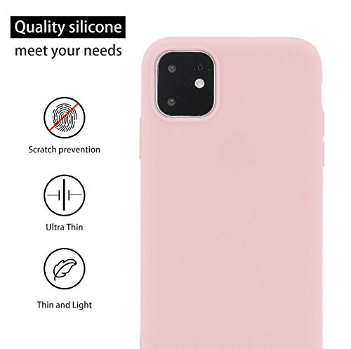 Cuzz Cover per iPhone 11+(1 pezzi proteggi schermo in vetro temperato) tinta unita premium flessibile in silicone TPU custodia sottile ultra leggera antiscivolo anti-shock housse(rosa chiaro)