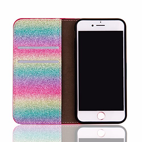 Cover per iPhone 7 Plus, PLECUPE Bling Brillantini Diamante Book Folio Foglio Conchiglia Case, PLECUPE Butterfly Fibbia Magnetica Sparkle Powder Pelle Cuoio con Kickstand e Card Slots per iPhone 7Plus (Gradiente Verde)