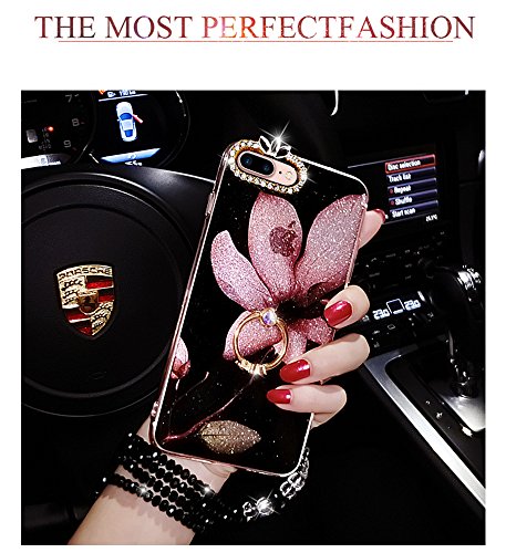 Cover per iPhone 8 Plus/ iPhone 7 Plus Full Body, Custodia per iPhone 8 Plus,Bonice Bling Diamante Glitter Lusso Cristallo Strass Morbida Rubber [Rotazione Grip Ring Kickstand] con Supporto Dell'anello Shock-Absorption Bumper e Anti-Scratch Case Cover Per iPhone 8 Plus/ iPhone 7 Plus 5.5" - Fiore 03