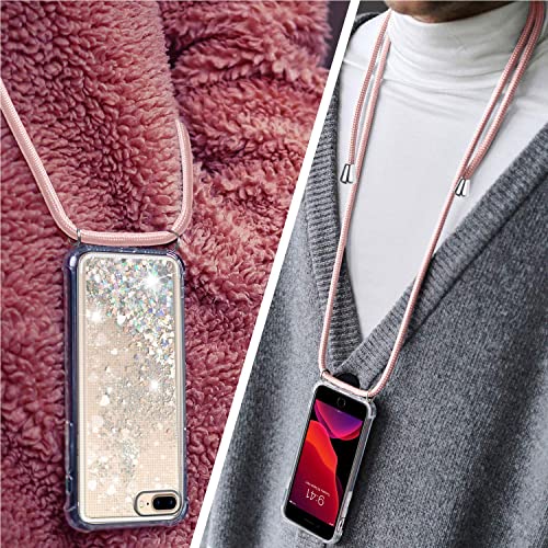 TUUT Cover per iPhone 7 Plus/8 Plus con Cordino, Glitter Bling Liquido Custodia Sparkly TPU Silicone Protettivo Morbido Brillantini Quicksand Cellulare Cover con Cordoncino Case -Oro Rosa