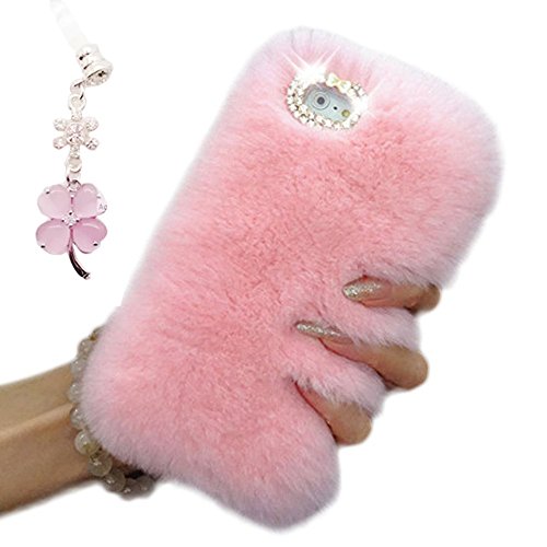 Cover per iPhone 8 Plus/iPhone 7 Plus,Custodia per iPhone 8 Plus, Bonice Pelliccia Di Lusso Cristallo Bling [Serie peluche] ed Elegante Diamante Rex Rabbit Fur [carino] Custodia Inverno Calde Soffici Villi Eco-pelliccia Peluche Lana Bling Strass Caso Cover per iPhone 8 Plus/iPhone 7 Plus( 5.5 Pollici) + Anti-Dust Strass Tappi Polvere(Rosa chiaro)