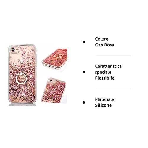ZCRO Cover per iPhone 6 Plus/iPhone 6S Plus (Non per 6/6S) Custodia Cover Plastica Dura Case Liquido Glitter Brillantini Trasparente Cover Silicone Bumper con Ring Anello Supporto Stand (Oro Rosa)
