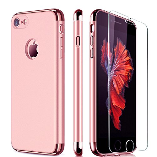 Cover iPhone 7, PRO-ELEC Custodia iPhone 7 con [Vetro Temperato Protezione Schermo] Ultra Sottile Anti-graffio Resistente Custodia Cover per iPhone 7 (4.7 pollici) - Oro Rosa