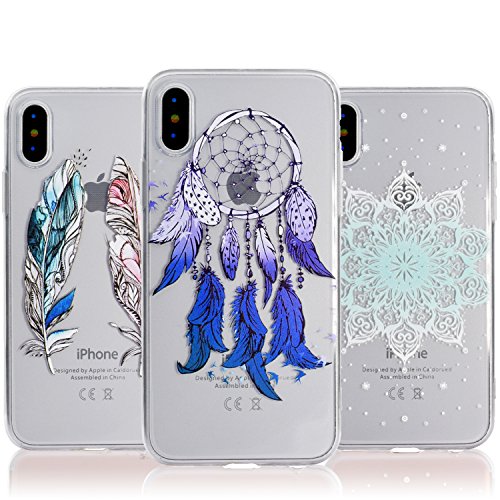 3 x Cover iPhone X / iPhone 10 Silicone, Custodia iPhone X / iPhone 10 5.8" Morbido TPU - Vandot Disegni della pittura del modello variopinto 3D Case Antiscivolo Satinato, Ultra Sottile Cassa Protettiva Custodia iPhone X / iPhone 10 Cover Trasparente, Silicone Cover Protettivo + [ 3 PCS Ultra Sottile DIY Carta Sostituibile con il Bello Modello ] Crystal Chiaro Custodia per iPhone X / iPhone 10 5.8", Piume Di Colore, Dream Catcher Campanula, Sun Flower Datura