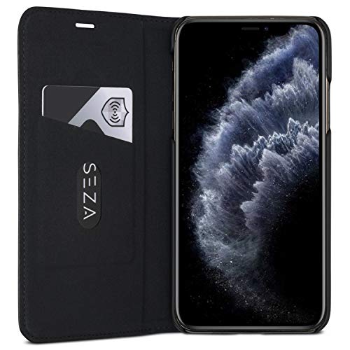 Cover iPhone 11 Pro Max Nero Similpelle a Libro - CASEZA"Oslo" Custodia Eccellente in Pelle Sintetica a Portafoglio per iPhone 11 Pro Max (6.5") Originale - Ultra Sottile con Chiusura Magnetica