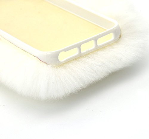 Cover iphone 6 plus, Sunroyal [Serie peluche] ed elegante Diamante Rex pelo artificiale [carino] Cover Custodia per iPhone 6 plus / 6s plus 5.5" Inverno calde soffici villi eco-pelliccia peluche Lana bling Strass caso (Bianca)