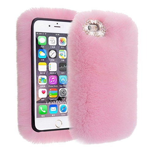 Cover iphone SE, Sunroyal [Serie peluche] ed elegante Diamante Rex pelo artificiale [carino] Cover Custodia per iPhone SE 5 5S 5G Inverno calde soffici villi eco-pelliccia peluche Lana bling Strass caso (Rosa chiaro)