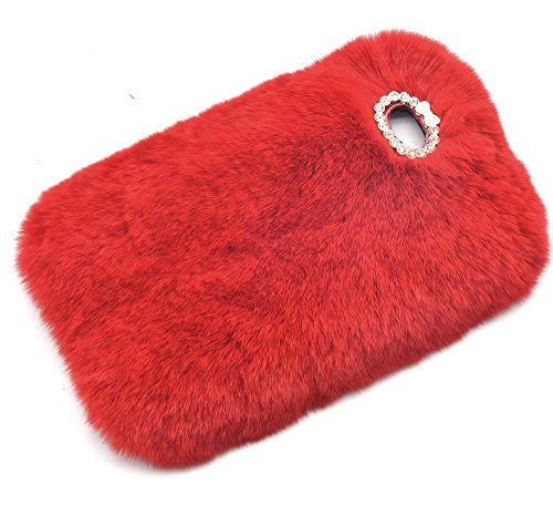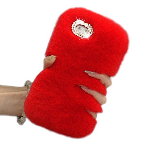 Cover iphone 6 plus, Sunroyal [Serie peluche] ed elegante Diamante Rex pelo artificiale [carino] Cover Custodia per iPhone 6 plus / 6s plus 5.5" Inverno calde soffici villi eco-pelliccia peluche Lana bling Strass caso (Rosso)