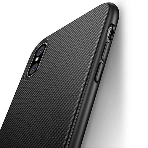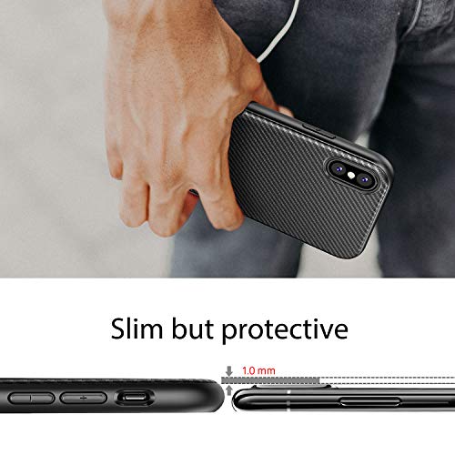 Cover per iPhone X / iPhone XS [Supporta la Ricarica Wireless] J Jecent Custodia [Look in Fibra di Carbonio] di Protezione in Morbida Silicone TPU Anticaduta Antiscivolo Antigraffio Case - Nero