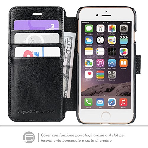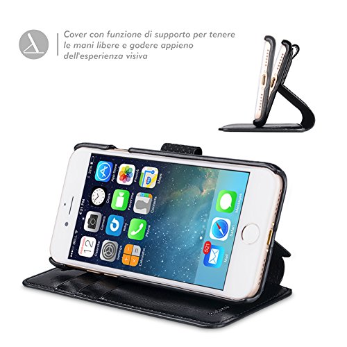 Cover iPhone 7 TANNC [ultra sottile] [pellicola vetro temperato schermo inclusa] Custodia in Pelle Case Con Magnete e Supporto Orizzontale - Nero