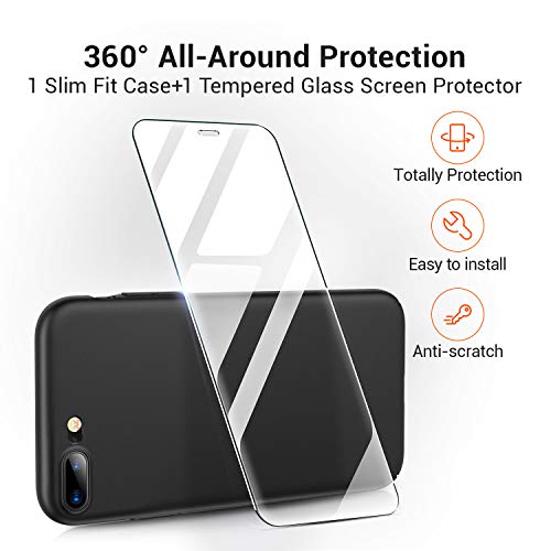 Cover iPhone 8 Plus, Cover iPhone 7 Plus, TORRAS Custodia Snella Ultra-Sottile con [Protettore Schermo Vetro Temperato], Coperchio Custodia Rigida Opaca Protettiva Pienamente Stilistica Semplice per Apple iPhone 7 Plus (2016) / iPhone 8 Plus (2017) - Nero