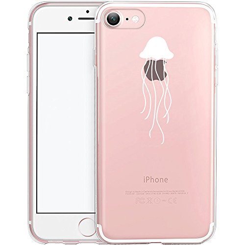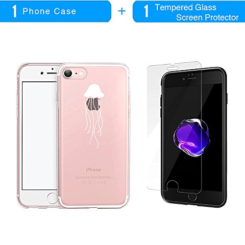 Cover iPhone 7, TrendyBox Trasparente Case Cover per iPhone 7 con Vetro Temperato Pellicola Protettiva (Meduse bianche)