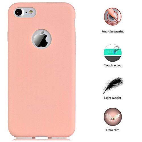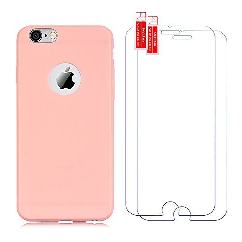 Cover iPhone 7 8 Vetro Temperato, E-Unicorn Custodia Cover Apple iPhone 7 8 Rosa Silicone Ultra Sottile Morbida TPU Gomma Colorate Slim Bumper Opaca Case Copertura Protettiva Posteriore + 2 Pack Pellicola Vetro Temperato iPhone 7 8 HD Film 9H 3D Anti-impronte