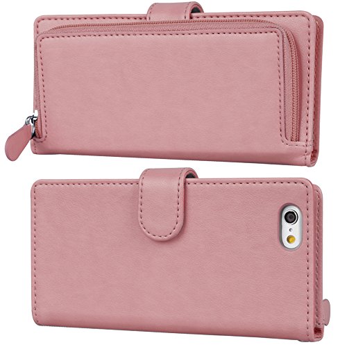 Cover iPhone 6s Plus, TORU [ZIP WALLET] Custodia a portafoglio per iPhone 6 Plus [Inserti per carte][Tasca con cerniera][Antiurto][Pelle][Chiusura lampo][Cinturino da polso][Flip cover] per iPhone 6s Plus/6 Plus - Rosa
