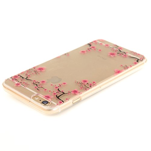 Cover iPhone 6S PLUS Cover iPhone 6 PLUS Wanxida Custodia in Silicone TPU Cover Trasparente Chiaro Soft Clear Case Bumper Cover Leggera Sottile Custodia Morbida Liscia Cassa Antigraffio Antiurto Cover Protettiva con Design Unico - Fiore Rosa della Prugna