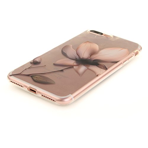 Cover iPhone 7 PLUS Wanxida Custodia in Silicone TPU Cover Trasparente Chiaro Soft Clear Case Bumper Cover Leggera Sottile Custodia Morbida Liscia Cassa Antigraffio Antiurto Cover Protettiva con Design Unico - Fiore di Magnolia