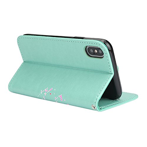 COZY HUT Cover per iPhone X/iPhone XS, [Kickstand] [Slot per Schede] [Chiusura Magnetica] Flip Caso in PU Pelle Premium Portafoglio Custodia per iPhone X/iPhone XS - Fenicottero verde