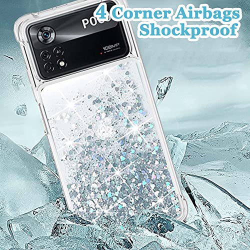 ②【Design Sabbie Mobili Liquido】Cover liquida per Xiaomi Poco X4 Pro 5G. Le sabbie mobili liquide interne possono muoversi liberamente su e giù, il liquido che scorre vivace con le sabbie mobili proprio come il bel diamante che galleggia nell'acqua dell'oceano, interessante e bello, Un regalo dolce e romantico per amiche, mogli e familiari.
