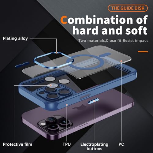 Cover magnetica per iPhone 15 Pro Max compatibile con MagSafe Wireless Custodia per iPhone 15 Pro Max Trasparente Rigida PC Cover, Cover per iPhone 15 Pro Max Ultra Sottile Leggero Antiurto Case (Blu)
