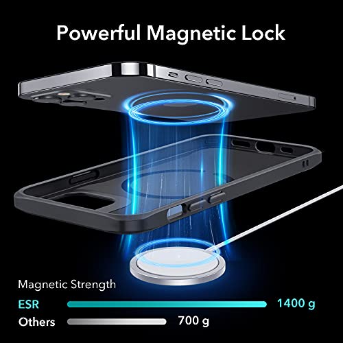 ESR Cover Magnetica per iPhone 12 Pro Max 6,7 Pollici, Compatibile con MagSafe, Custodia Rigida Trasparente con HaloLock, Retro Antigraffio, Struttura Protettiva Antiscivolo, Nero