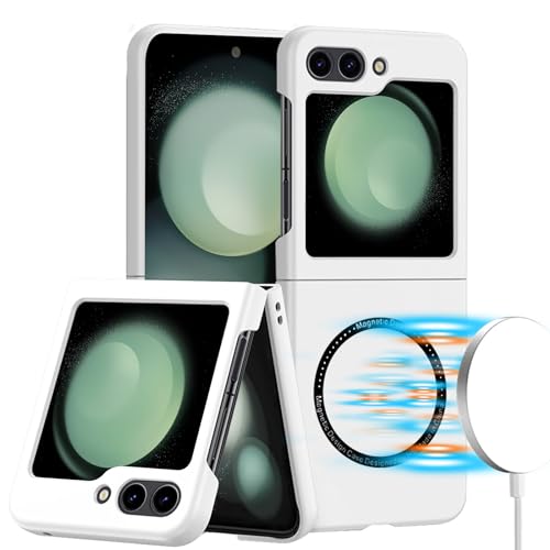 Cover Magnetica per Samsung Galaxy Z Flip 5 Cover compatibile con Magsafe,Z Flip 5 Cover Magnetica Sottile Custodia Protettiva Militare Grado Antiurto per Samsung Galaxy Z Flip 5 5G 2023,Bianco
