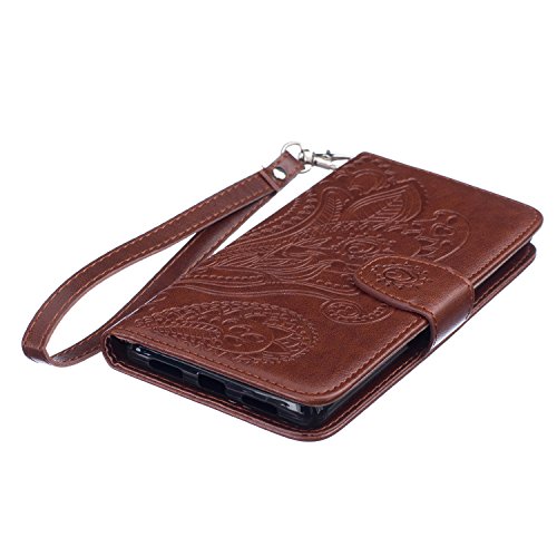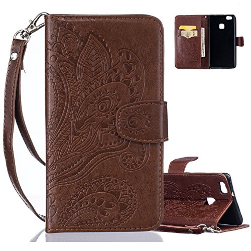 P9 Lite Cover Marrone, Aeeque Elegante Fiore di Pavone Modello Custodia a Libro per Huawei P9 Lite (5.2 Pollici) in Silicone Pelle PU Flip Smart Portafoglio Cover con Chiusura Magnetica e Funzione di Supporto
