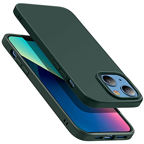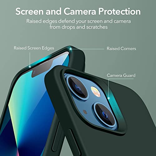 ESR Cover Morbida, Compatibile con iPhone 13 (2021) (6.1”), Custodia in Silicone Liquido, Sottile e Antiurto con Rivestimento in Microfibra AntiGraffio, Serie Cloud, Verde Scuro