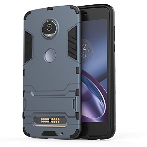 Cover per Motorola Moto Z2 Play (5,5 Pollici) 2 in 1 Hybrid Dual Layer Completamente Shock Resistente Armour con Cavalletto Funzione Custodia (Blu Nero)