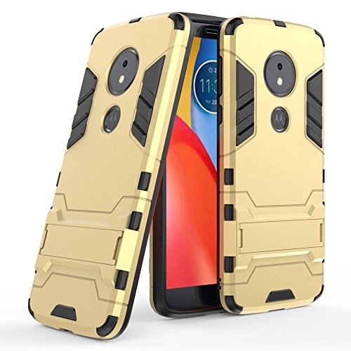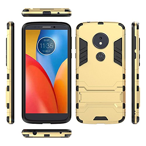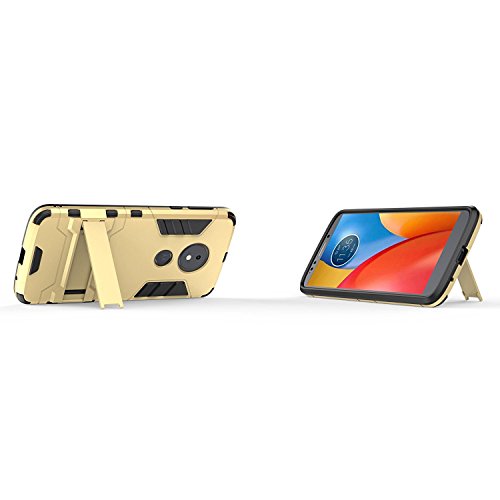 Cover per Motorola Moto E5 (5,7 Pollici) 2 in 1 Hybrid Dual Layer Completamente Shock Resistente Armour con Cavalletto Funzione Custodia (Golden)