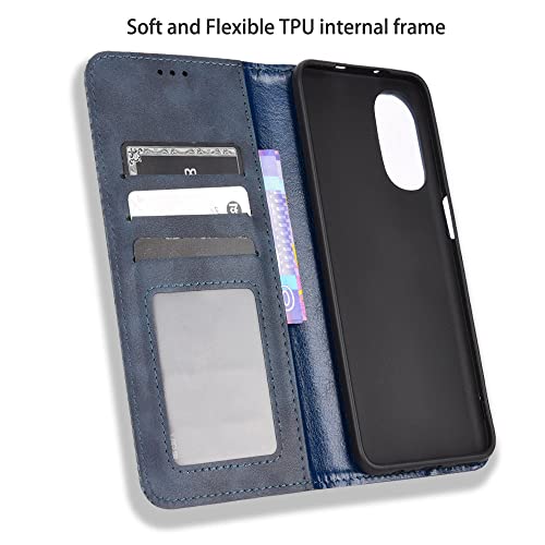 Cover Motorola Moto G82, RonRun Custodia a Libro con Supporto Stand e Slot Porta Carte Case a Portafoglio Magnetica in Pelle PU Adatto per Motorola Moto G82, blu