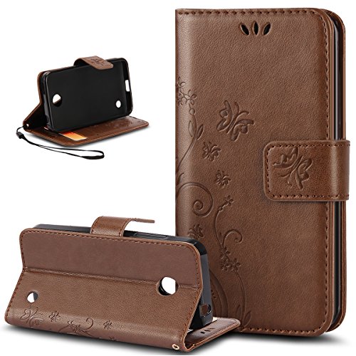 Cover Nokia Lumia 635,Cover Nokia Lumia 630,ikasus Goffratura Arts Farfalla Fiore Immagine Flip Cover Portafoglio PU Pelle Protective Wallet Stand Custodia Cover per Nokia Lumia 630/635,Caffè