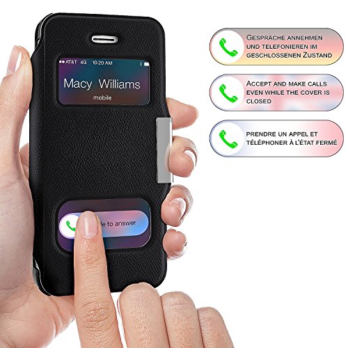 Cover OneFlow per iPhone 5 / 5S / SE Custodia con finestra | Flip Case Astuccio Cover per cellulare apribile | Custodia cellulare Cover rotettiva Accessori Cellulare protezione Paraurti DEEP-BLACK