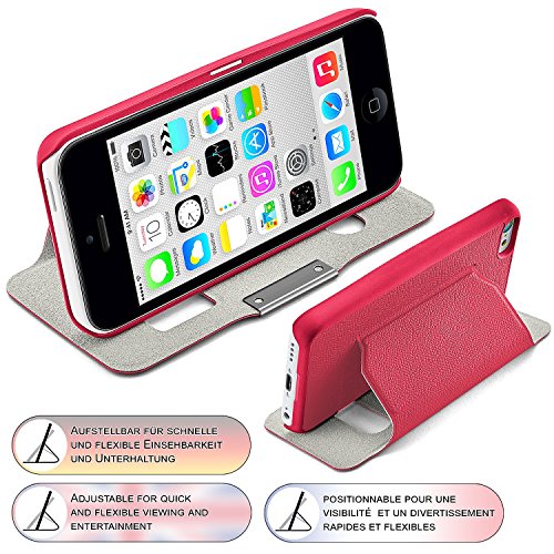 MoEx Cover OneFlow per iPhone 5C Custodia con Finestra | Flip Case Astuccio Cover per Cellulare apribile | Custodia Cellulare Cover rotettiva Accessori Cellulare Protezione Paraurti Berry-Fuchsia